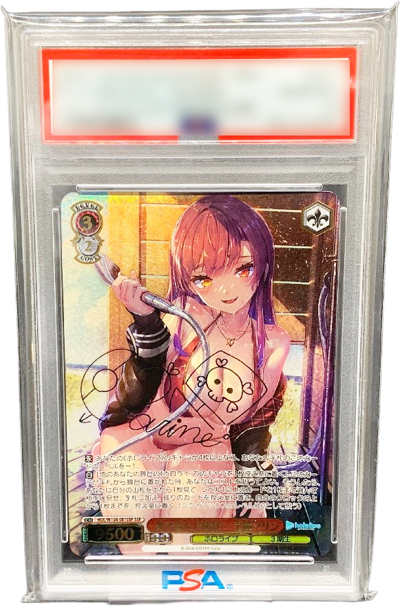 PSAなどの鑑定済みカード類は特に高く、数十万円で取引される可能性のある物となります。傾向としては宝鐘マリンのような人気キャラクターのレアカードほど人気が高くなる傾向があります。