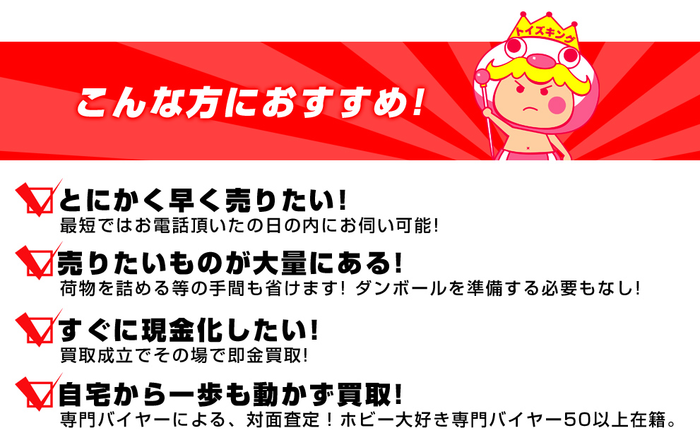 幅広いジャンルのコレクション、グッズの査定、宅配買取、店頭買取、出張買取を行っています。